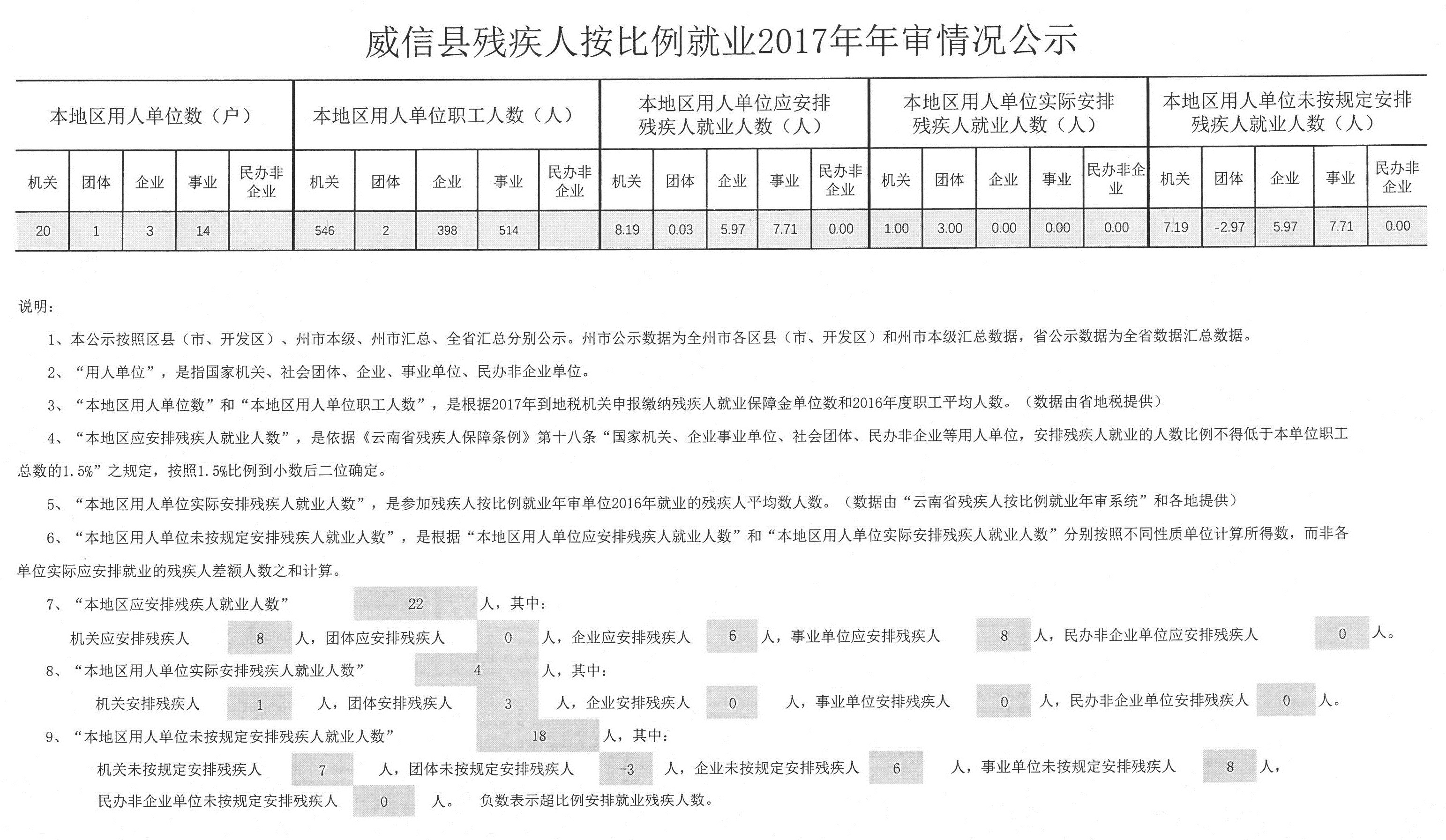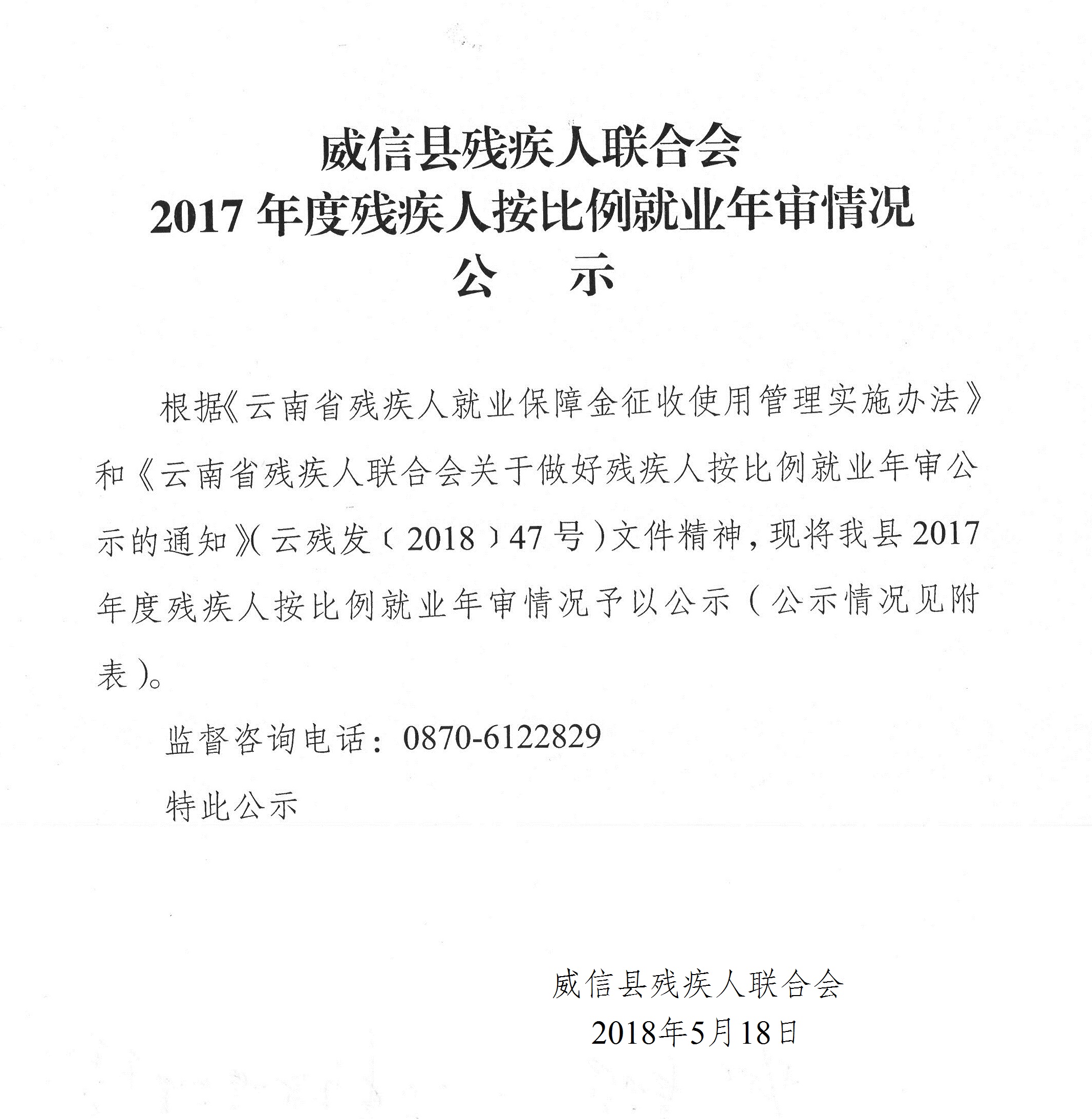 威信县残疾人联合会2017年度残疾人按比例就业年审情况公示