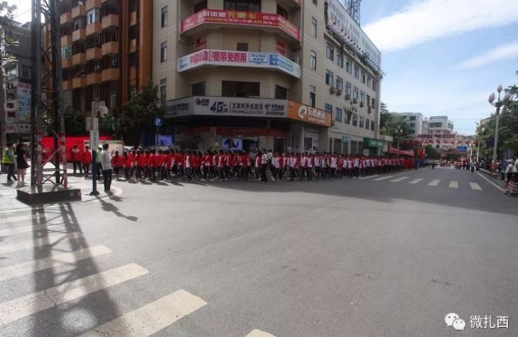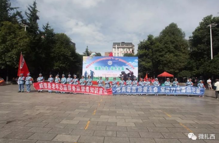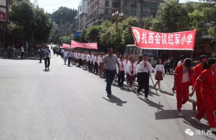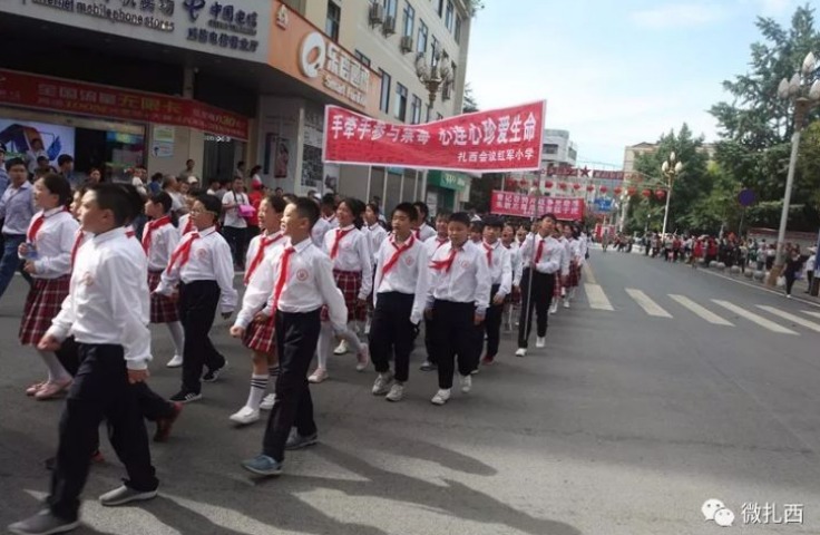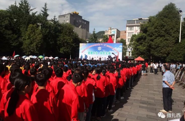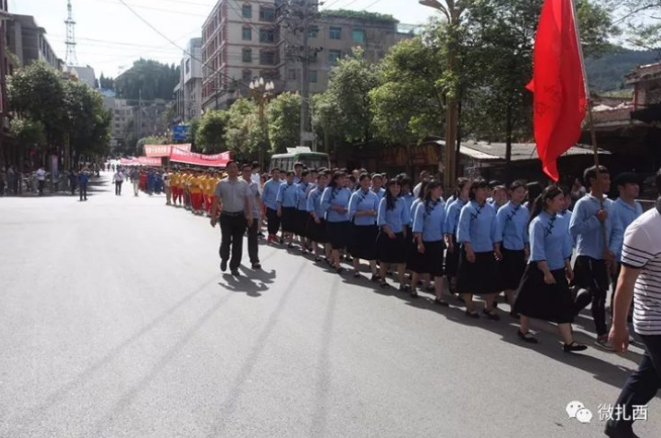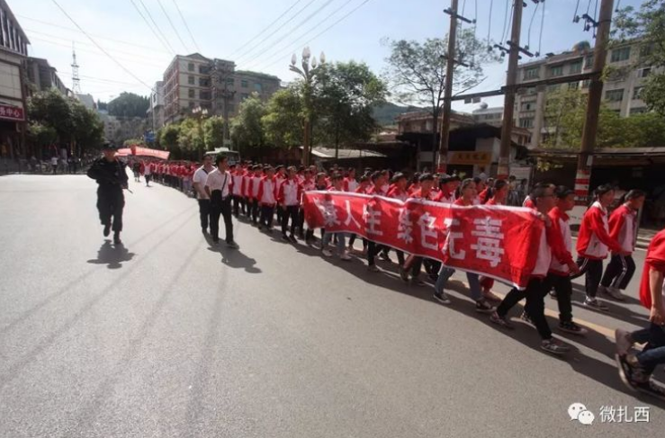 随后,县一中、二中、扎西小学等各中小学学生迈着整齐的步伐走上街头进行了禁毒游行宣传活动。
